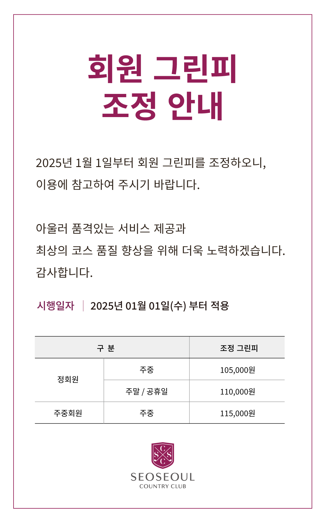회원 그린피 조정 안내