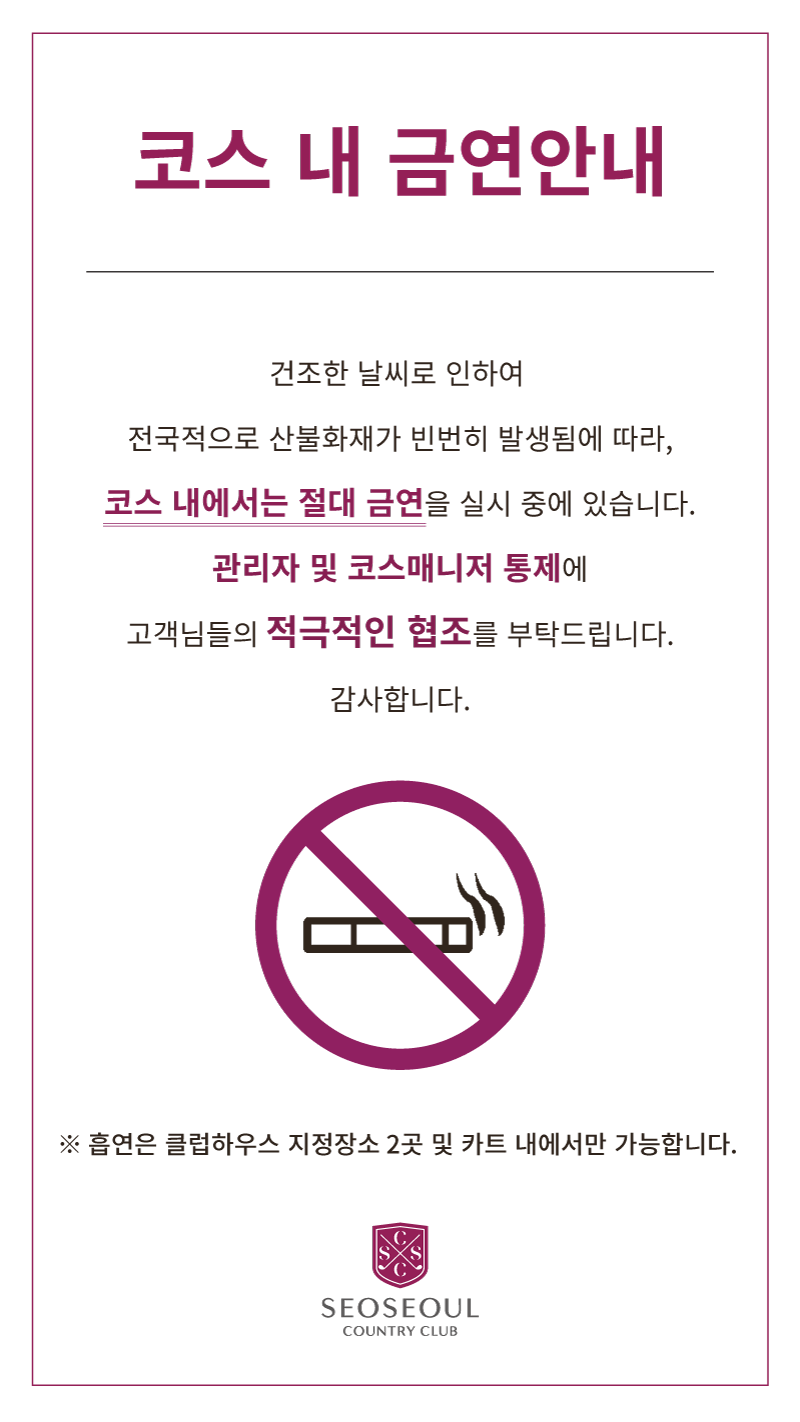 골프 코스 내 금연안내