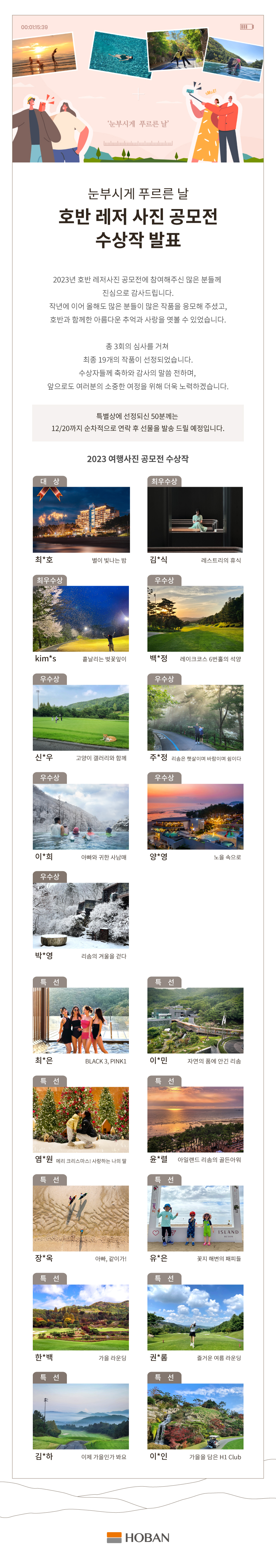 호반 레저 사진 공모전 수상작 발표