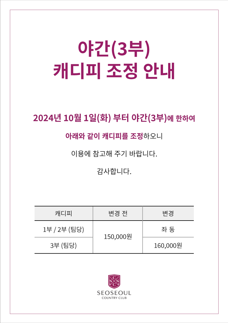 야간(3부) 캐디피 조정 안내
