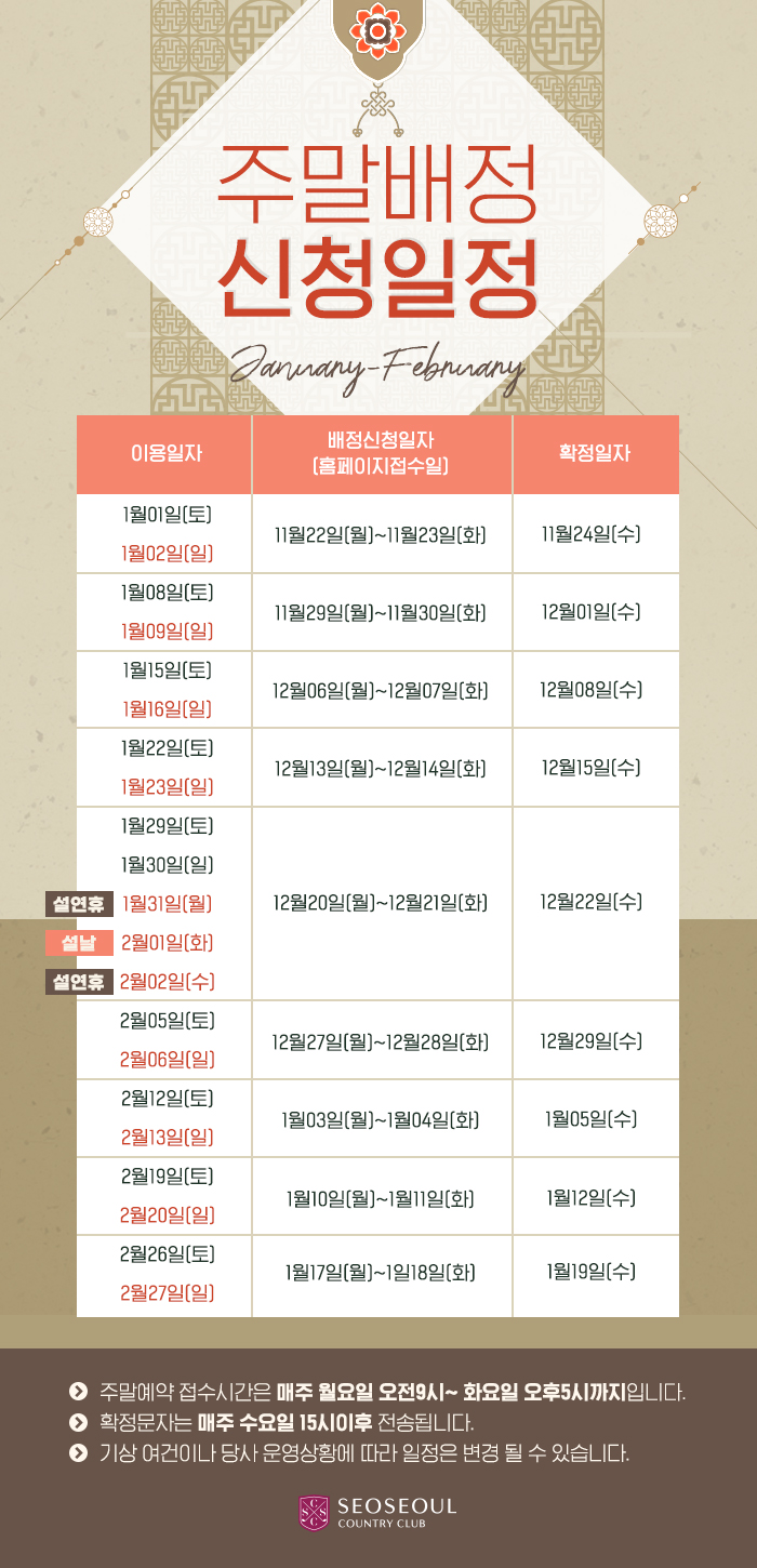 1~2월 주말배청 신청일정 안내
