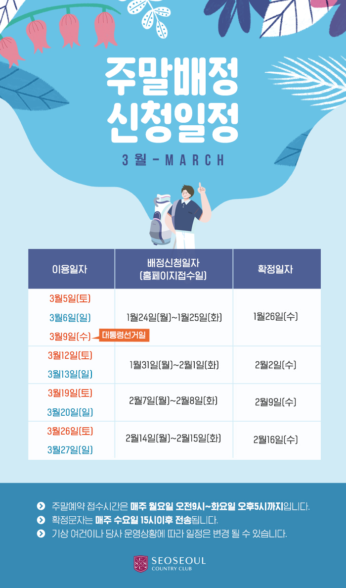 3월 주말배청 신청일정 안내