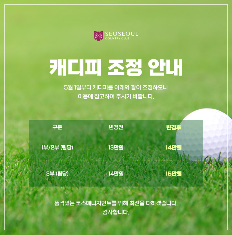 비회원 그린피 조정 안내