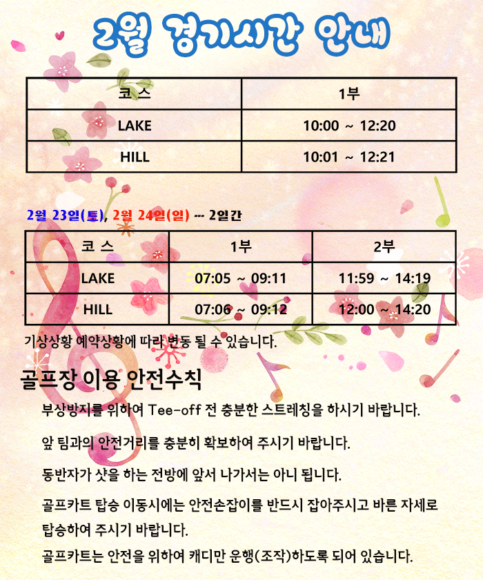 2월 경기시간 안내