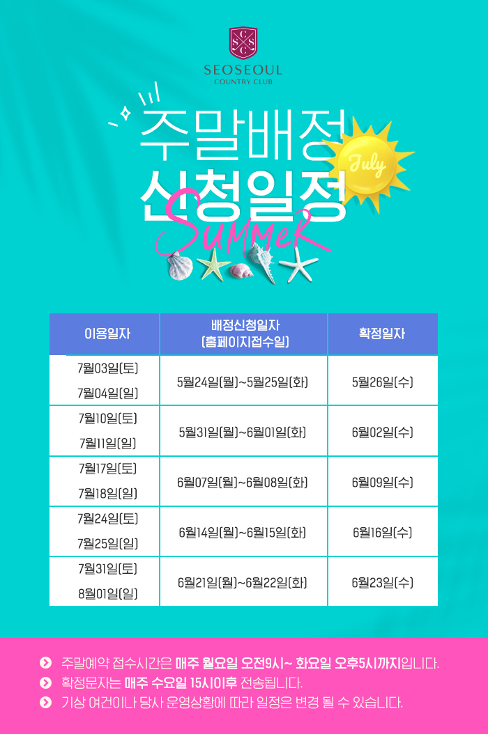 7월 주말배정 신청일정 안내