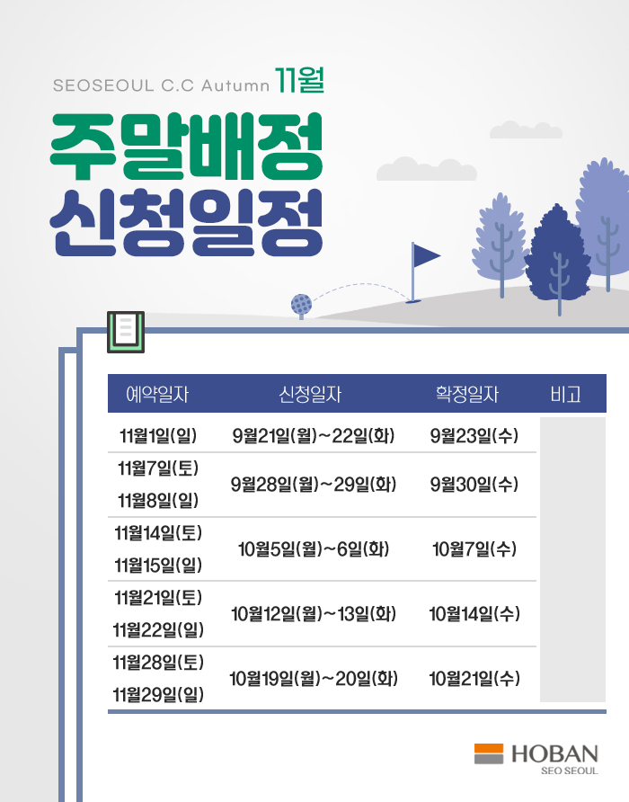 11월 주말배정신청일정 안내